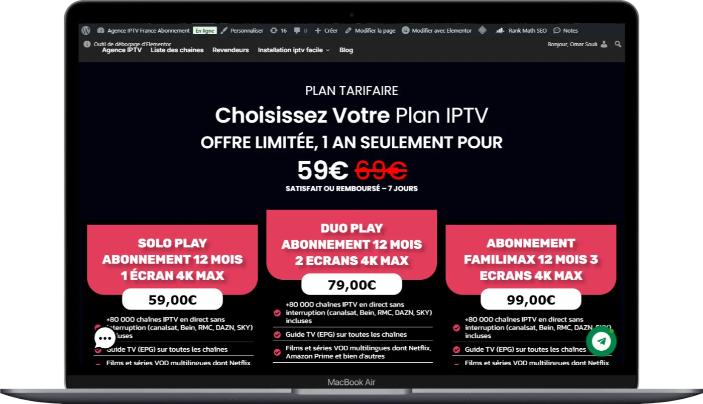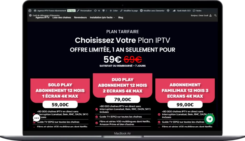 Création site E-commerce vente des abonnements IPTV France en freelance
